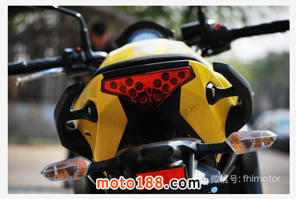 ER-6n的前臉看起來(lái)比較兇悍,四燈泡燈組的設(shè)計(jì)非常合理,上方兩個(gè)角的位置和中間位置為常亮燈,負(fù)責(zé)近光,下方一顆為遠(yuǎn)光/pass,總體看來(lái)為縱向排列。轉(zhuǎn)向燈在前臉中部?jī)蓚?cè),寬度合理。尾燈設(shè)計(jì)在尾座下方,LED燈組組成,形狀和Z1000的尾燈十分相似。