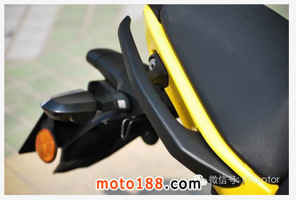 ER-6n的坐墊采用織物包裹,軟硬適中,再加上寬度合理,騎乘感受相當(dāng)舒適。后座兩旁配以扶手,既可以改裝邊箱,又可以讓后座乘客抓握,相當(dāng)人性化,也增加了美感。