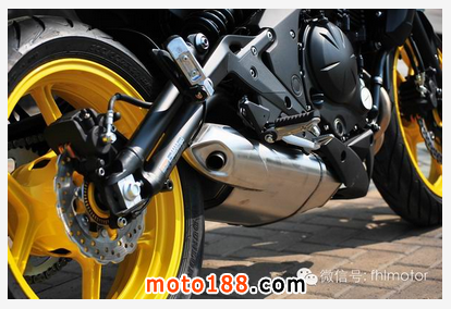 ER-6n的發(fā)動(dòng)機(jī)為649cc水冷并列雙缸DOHC八氣門(mén)發(fā)動(dòng)機(jī),最大馬力62hp,最大扭力64Nm,7000轉(zhuǎn)時(shí)同時(shí)達(dá)到峰值,日常通勤綽綽有余。排氣設(shè)計(jì)為隱藏式排氣,使整體感官對(duì)稱(chēng),前后協(xié)調(diào),同時(shí)裸露的后搖臂讓ER-6n的特點(diǎn)一目了然。