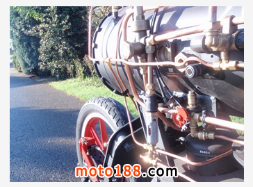 核心提示: 荷蘭Revatu Customs車輛改造工作室推出了一輛摩托與蒸汽火車頭混合版蒸汽摩托車,其炫酷夸張的造型讓蒸汽迷愛不釋手,各種壓