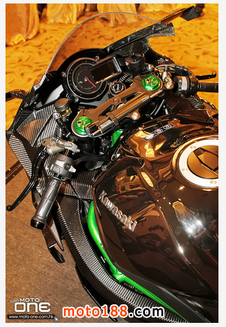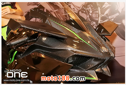 H2R采用噴上川崎綠的鋼管車架,而非采用日本跑車慣用的鋁合金車架,再者配合單尾擔設計,極富意大利車風格,配上機械增壓的直列四汽缸998cc引擎,馬力輸出310匹馬力。由于引擎使用了機械增壓關系,車頭入風口連接兩條全碳纖制造的導管把鮮風引進機械增壓內,壓縮空氣然后再經由火辣辣紅色導管傳進風鼓內。當碳纖包圍披回車輛后,視覺上讓碳纖導風管成為包圍一部份。另外4出1的原裝排氣管像是鈦合金制,并富有改裝排氣管的風味,欣賞車輛的結構,車身細節擁有緊湊及壓迫布局,全身長滿沒有脂肪的肌肉。
