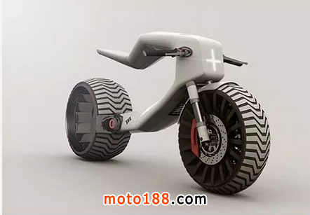 “E-MX”是一輛采用電力驅動的摩托車,簡稱“電動摩托車”,后輪是一大看點,而前輪顯得比較傳統,包括這剎車盤,就是現代貨。設計師也沒有給出太多的信息,此設計應該還是以造型為主。