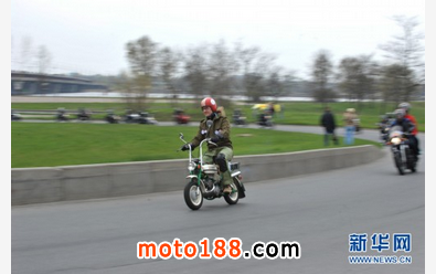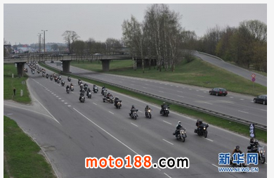 26日, 拉脫維亞摩托車愛好者在拉首都里加街頭駕車巡游。當天,拉脫維亞首都里加舉辦了一年一度的摩托車巡游活動,慶祝又一個摩托車季的到來。拉脫維亞有大量的摩托車愛好者,但是這里冬季寒冷多雪,他們只能把心愛的摩托車收藏起來,而到了春暖花開的時候,再把愛車打扮起來進行巡游,慶祝摩托車季的到來。此次活動由拉脫維亞摩托車愛好者協會舉辦,共有30多個摩托車俱樂部的4000多輛摩托參加了巡游活動。
