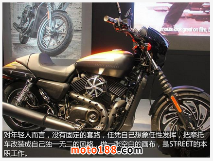 目前哈雷在國內(nèi)共計投放了5個車系共計26款車型,每個車系均衍生出多款風格不同的車型,唯獨STREET系列,只有750一款,雖然國外也有STREET 500車型,但也只有發(fā)動機排量的差異,車型設(shè)計上是完全一致的。不過請放心,“世界上不會有兩部相同的哈雷”,這句被哈雷車主奉為圣經(jīng)的話,放在STREET 750必須生效。“STREET車系就是一張空白的畫布,車主可以在上面隨意發(fā)揮,創(chuàng)作自己獨有的作品”,在為什么STREET車系只提供一款車型的問題上,哈雷戴維森中國區(qū)總裁高瑾馨女士是這樣解釋的。
