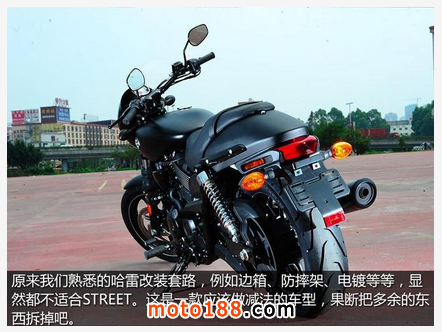 在我看來,玩風格,是STREET的唯一出路,雖然它的機動性能是哈雷家族中的優(yōu)等生,但還是和本田、杜卡迪等高手差了不少。比格調(diào),這可是歐日對手無法企及的,如圖高瑾馨女士所說,這張空白的畫布具備無限的創(chuàng)作空間,油畫還是漫畫,比的是精神層面的東西,哈雷品牌的魅力,是遠超過一部摩托車本身的。