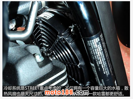 最最重要的,是全新的水冷系統(tǒng),水箱面積遠大于剛剛才追加上水冷系統(tǒng)的103立方發(fā)動機,這是個“誰用誰知道”的好處,哈雷騎士最大的噩夢,是走走停停時,騎士的胯下會被風冷發(fā)動機熱情地炙烤,“煎蛋”的痛苦,將不會出現(xiàn)在STREET 750上。