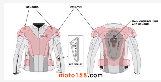 裝在衣服上的感應器以30-60毫秒為持續監測騎乘狀況,當車主處于摔車或是其它傷害風險時,系統可以在25毫秒內完成氣囊的充氣!