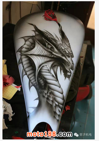 一個帶有靈魂的藝術品,是生動的,是活的,不是死一般敞在你面前,我們從未見過真正的龍,但是龍的形象一直活生生地落戶在我們的大腦中,當龍和摩托車藝術性的結合起來,我們才真正體驗到摩托車精神真正融入了中國人的血脈了,藝術品中的精品升華了,騎士精神體現出來了,我們不是在騎車,是在“騎龍”,“騰龍駕霧”地馳聘天下。