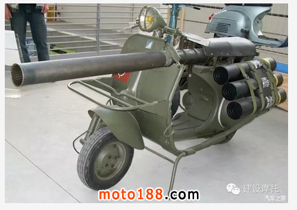不過如果你幻想著一邊騎著羅馬假日中的性感踏板,一邊拿大炮轟坦克的話,那你就太天真了。這輛1950生產的軍事車輛主要目的是運送機槍,武器送到了指定地點之后,要拆下來,架上支架才能夠使用。