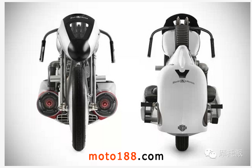 B-Rocket「飛行摩托車」造型帶有新復古主義氣質,深得航天科技設計特色,獨一無二流線型設計令人聯想起六十年代航天工業的實驗計劃、在內華達州Bonneville鹽湖上創下速度紀錄的高速摩托車、身穿白色制服的猶他州工程人員、還有勇者無懼試車手的風采…
