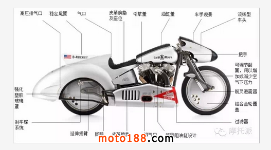 Shaw Harley Davidson的工程師與Bell & Ross設計師為了達至最理想的空氣動力性能,采用低位駕駛坐姿,令車手與車身靈神合一,在每個設計階段,工程人員皆以火箭為藍本,務求締造人車合一境界。