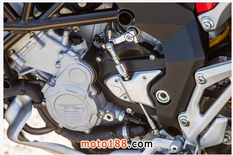 引擎動力:VELOCE 800 搭載三缸引擎,修改部分零件之后,將最大馬力降至110匹馬力,但中低轉扭力較原本提升18%,且在3,500至10,300間可輸出最大扭力的95%,相當驚人!