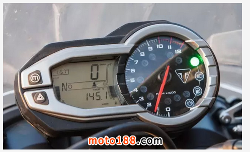 這個級別車型的坐墊高度基本都是可以調整的,凱旋的XRx的坐墊舒適性非常不錯,高度范圍在790mm到830mm之間,最低位置高度要比雅馬哈FJ的最低位置矮35mm,這對于身高不太高的騎手來說是個很大的區別。凱旋的Showa避震軟硬調教的非常理想,并且懸掛行程竟然要比雅馬哈多2英寸,在對復雜地形的適應能力也更強。兩臺車的風擋都是可調的,效果也是非常理想,對于身高較高的騎手來說也完全足夠使用,只是雅馬哈FJ的風擋在高速行駛時會帶來較大的風燥。凱旋的巡航控制按鈕在這款車上可謂是新鮮的玩意,當然XR車型上可沒有這個配置,XRx多出的1,100美元可不是無緣無故的,當然還包括容積更大的郵箱和更好的燃油經濟性。