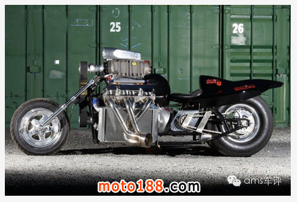 這輛Rapom摩托車車經過復雜的改裝后,車身重454公斤,已不算輕。但Rapom搭載的是一款8.2升的V8超級引擎,配合2擋反向變速箱,最大動力輸出達到了驚人的1200匹馬力,開起來真可謂是貼地飛行了!