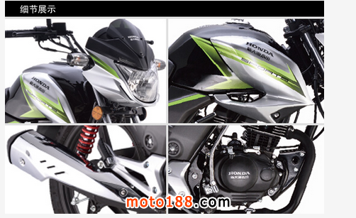 戰豹,車如其名,車身長瘦線條優美如一只奔跑的豹子。立體雕塑油箱,美觀大氣很有肌肉感。大面積鍍鉻高效消音器實用而美觀。搭載CBF渦燃發動機,相信很多車迷對這款發動機并不陌生,這是一款純正本田科技的發動機,動力強勁平順,帶平衡軸使機器運行更加流暢,將整車的震動降到最低。戰豹還采用了電磁防盜、鋁合金腳踏,大盤雙活塞碟剎配備,都屬于主流。本田的品牌實力大家有目共睹,擁有不少忠實的粉絲。而該車做工、性能都屬一流,價格也在9000元以下,戰豹一出,必定會引爆市場。