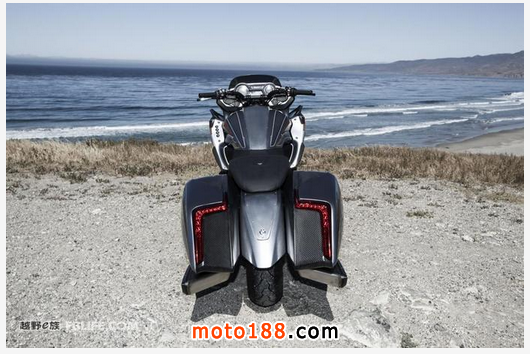 車頭過后,向下傾斜的油箱以及突出于車頭之外的車把證明了這輛車101概念車絕對(duì)不會(huì)是賽車的爬式騎姿。整車采用低坐墊的設(shè)計(jì),車輛尾部也向下傾斜迎合水滴形的造型,兩側(cè)的尾箱對(duì)后輪形成了良好的遮蔽效果。從尾部看上去,101概念摩托是一副標(biāo)準(zhǔn)的旅行摩托的造型。當(dāng)然,整車的騎姿也是標(biāo)準(zhǔn)的旅行摩托式的立式騎姿,能夠保證駕駛者長(zhǎng)途旅行時(shí)的舒適程度。