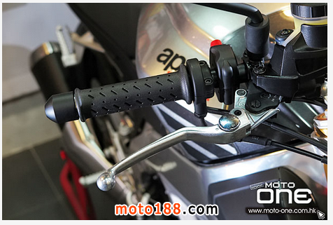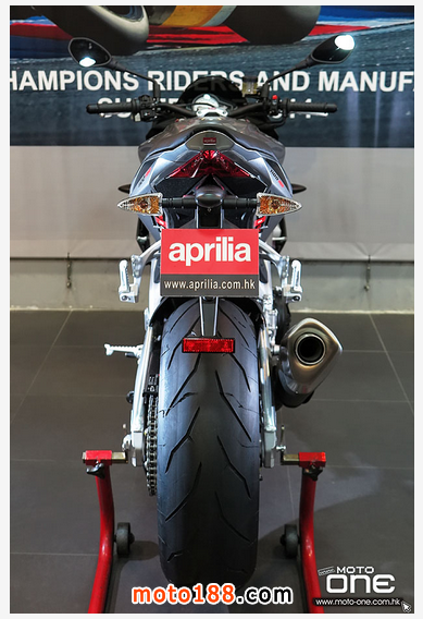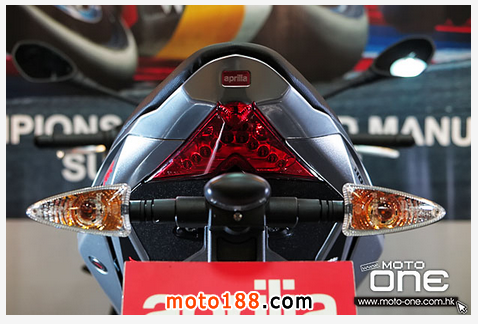 ●車頭上的APRC 貼紙,即是電子系統(Aprilia Performance Ride Control system),而該套電子系統包括Aprilia Wheelie Contro防起頭系統、Launch Control賽車式起步控制、Quick Shift快速電子轉檔及Traction Control循跡系統。
