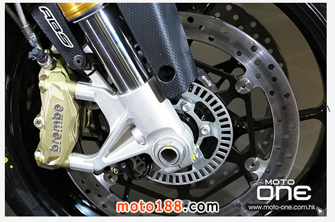 ●採用Sachs (factory版為ohlins)43mm全調校前叉,Brembo M432 monoblock 4活塞放射式煞車卡鉗。