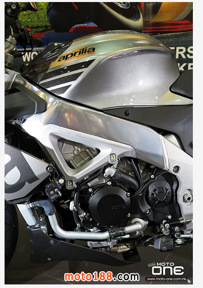 2015版TUONO鉆石型鋁合金車架大有來頭,設計源自SUPERBIKE冠軍的RSV4,還記得多年前首次實地試駕RSV4 FACTORY的愉快經驗,那臺「暴龍式」V4引擎給予筆者留下相當美好的回憶。廠方索性把SUPERBIKE街車化,TUONO就此衍生,把RSV4車架與引擎完全接收,并於2009年初度與TUONO接觸,外形低調的她卻埋藏完全的戰斗元素,街車身份擁有167hp,4年后V4R的出現,晉級至170hp,全套APRILIA先進的APRC電子技術與系統照單全收。至於新車馬力已達至175hp,主要是汽缸孔徑擴闊3mm,達至81mm,活塞行程則維持不變。這是大部份車廠的設計策略,汽缸孔徑擴大是最直接提升馬力峰值的方法,活塞行程的增長是對應扭力峰值。