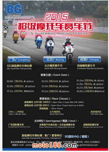 廣東:2015年BG再次與廣東肇慶賽車場(chǎng)達(dá)成協(xié)議,運(yùn)作3-4場(chǎng)超摩賽事。