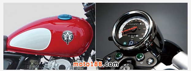烤漆采用汽車級珠光材料,高純度色彩配以水滴造型的偏口油箱設計,更顯復古時尚。