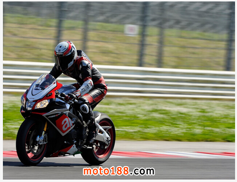 RSV4 一直以靈活的操控性及V4 動力心臟的性能表現著稱,不但在WSBK 賽事取得非常好的成績,同時也以此設定在今年進軍MotoGP。在Misano 賽道上,我們測試的是限量款五百臺的RSV4 RF,每輛車的三角臺上都打著該車的生產序號。RSV4 RF 搭配完整的賽車套件及專屬彩繪外觀,包含Ohlins 前叉、後避震器與防甩頭,輪框也升級為五爪鍛造鋁合金輪圈。其中最值得一提的就是智慧型V4-MP 套件:V4-MP 是針對APRILIA V4 引擎車款對應的多媒體平臺(APRILIA Multimedia Platform)包括藍牙控制器與專用線組,能讓智慧型手機成為處理車輛訊息的半專業工具。