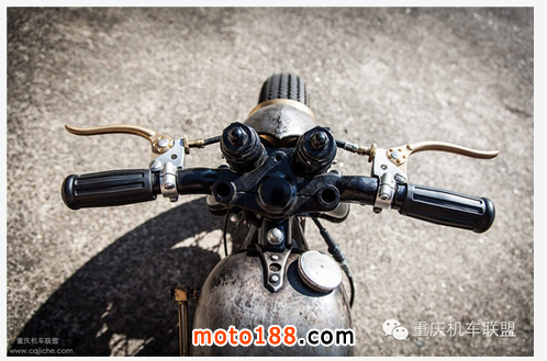 車身結(jié)構(gòu)的變化是非常大的:整個(gè)框架縮短,配有一個(gè)從Zero Engineering(小日本的企業(yè))美麗的斯普林格前叉。這是一個(gè)復(fù)古風(fēng)格的完美匹配,黃銅大燈也都是定制的,還配有內(nèi)置油門拉線。。。