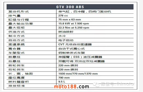 動力方面車架與發動機和GTS車系無異,USB接口插座同樣配備,而前減震采用全新的ESS懸掛系統,前后ABS&ASR系統也是標準配置。