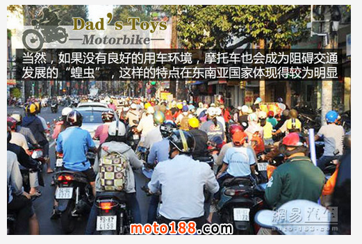 目前國內開始吸收歐美國家的摩托車文化,也有著一定發展空間,如果政策上能有個很好的引導,同時用車環境和駕駛者素質能夠進一步提升,這種輕便靈活的交通工具可能就不僅僅只是父輩的玩具,進而成為象征自由和激情的文化符號。