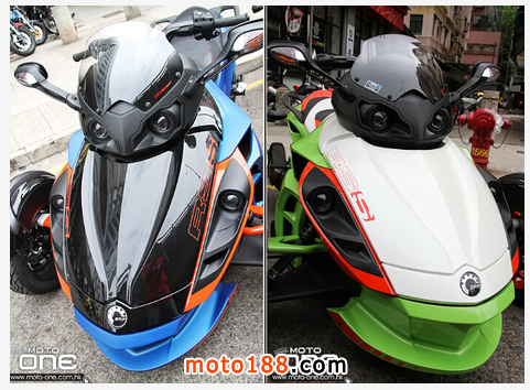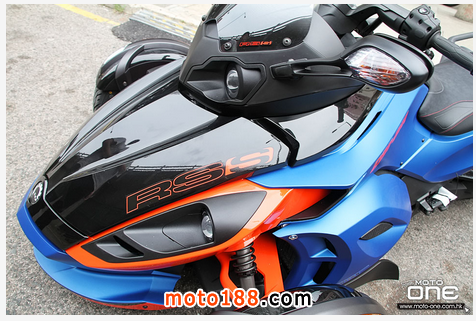 最新抵港的2015 Can Am RS-S,沿用于2014年的規格與裝備,最大分別是車身的配色。就先說RS-S special edition,採用了青綠、鮮橙及白色配襯,并配上黑白橙配色的座位及橙銀色的輪框,相當青春鮮明跳脫的配色,若它日在街中出現,勢必搶盡途人目光。