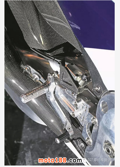 配置方面,RC213V-S配備了頂級的Ohlins減震,Brembo的卡鉗和剎車盤;該車還采用了與RC213V完全相同的鋁合金車架和搖臂,且搖臂可以進行調整;排氣系統由鈦合金制成;其外觀件均由輕量化的碳纖維手工打造。