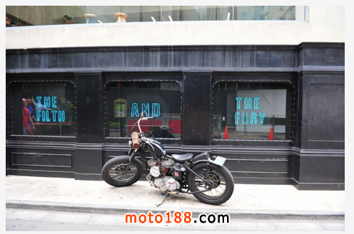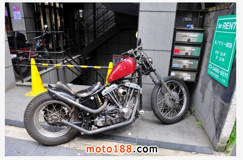 當我看了太多的本田黨之后開始感覺到有些視覺疲勞了,在原宿街頭漫步的時候,路邊的哈雷Panhead吸引了我的注意。從車子的整潔程度可以看得出車主對其愛護有加,發動機殼體上些許的綠色銅銹也是恰到好處,背景玻璃上的文字“The Filth and The Fury(污穢與憤怒)”與這臺摩托更是相得益彰。