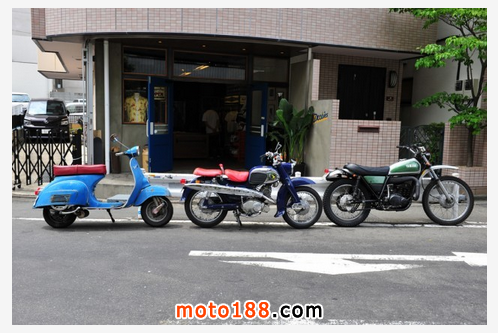 剛到日本的興奮心情已經過去,開始適應了日本的時差和街道,徒步成了我的主要交通方式,也正是因為這個原因我才在街頭遇到了這三輛漂亮的復古摩托。不過需要大家原諒我的是,對于上個世紀六七十年代的摩托我真的了解甚少,如果讀者知道,可以來做個詳細的介紹。左邊這臺Vespa真的是一臺非常經典的車型,單獨來看這一臺車,其成色也是相當不錯的,但如果對比一下右邊這兩臺本田Dream和雅馬哈(不確定型號),Vespa就顯得有些老舊了,有句話叫“車比車,氣死車”。