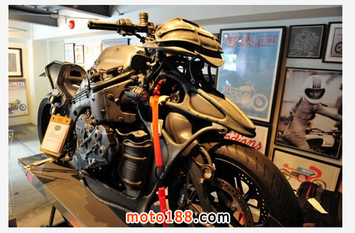 在店內的一個角落里,我發現了這臺造型頗為怪異的重型機車,店主Kawakita表示不太愿意讓我拍照,因為他自己都沒有將這輛車的照片放在網上,因為這輛車還沒有達到最佳的狀態。據介紹,這是一款寶馬K1600GTL重型機車,直列六缸引擎、車架和懸掛部分都保留了原廠的設定,車身覆蓋件則是Kawakita和他的小伙伴們一同手工打造的,此外進氣部分和排氣部分也都進行了更換,最后還有一部分細節工作要做。最終在我的努力嘗試下,Kawakita先生終于同意我保留了一張并不算清楚的照片,權當諜照吧。
