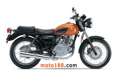 鈴木復(fù)古車型TU250X在2016款車型上也換上了新的橘/黑涂裝,這臺(tái)249cc的風(fēng)冷單杠車型售價(jià)依舊保持在4,399美元。相比前文介紹的車型,TU250X就要簡(jiǎn)單了很多,較低的坐墊高度能夠適應(yīng)很多入門級(jí)車手。新款車會(huì)在7月底到店銷售。