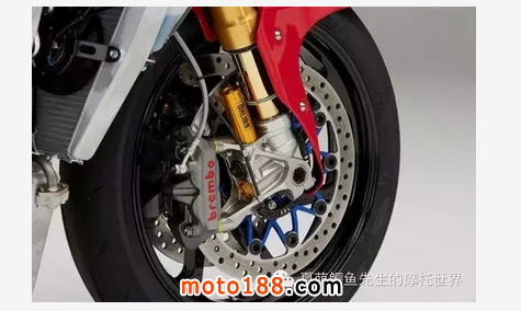 剎車方面不管是出于成本考慮還是實用性考慮也有降檔,從GP廠車的碳纖維剎車碟改成了普通的金屬剎車碟,配備Brembo卡鉗。