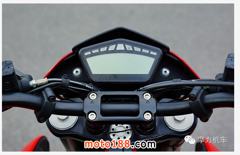 接著看到中央的部份,把手固定蓋采用簍空的一體件,而位于把手上方的,則是 Hypermotard 796 的儀表板,外觀可見完全無按鈕設計,且無指針,因此是全數碼的儀表板。