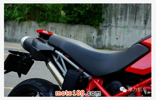 而尾燈的設計也是非常獨特,采用獨立的一個位置,不與殼體搭配,讓尾燈線條非常尖銳,而車主表示,這尾燈其實也是可充當后扶手使用,但盡管 Hypermotard 796很輕,依然不建議抓著尾燈來挪車。