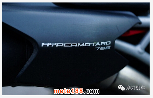 作為入門款,有著 DUCATI 熱血靈魂的 Hypermotard 796,不論是在引擎特性或者車臺輕量化,都下足了功夫,Desmodromic 氣門結構更帶來準確的氣門啟閉時間,讓動力喪失減到最低;輕量化的車臺與引擎設計,加上搭載 V 型 90 度的引擎,讓整臺車在寬度減少許多,面對重心的掌握能夠更有信心來操控,在引擎細致度上雖然沒有內鏈車種來得安靜,但是使用 ATPC 滑動式濕式離合器,雖少了特殊的招牌聲音,但是在整體噪音上下降許多,騎進巷弄間更不容易引人注目。