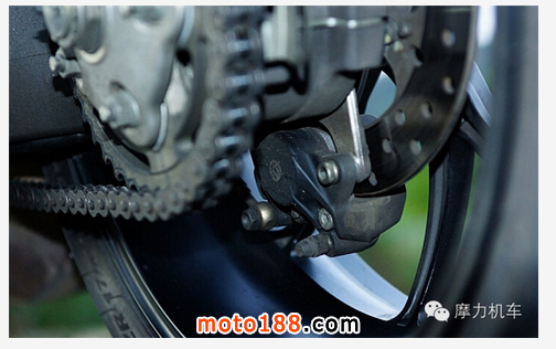 后碟盤則位于齒盤后方,為 245mm的固定碟盤,時速表的速度感應器也位于此處;而原廠對時速表的部份,也直接在原廠車主手冊說明,在儀表板上看到的時速為 +8% 于真實時速,也就是若真實騎到時速100KM/h,儀表板會顯示 108KM/h。