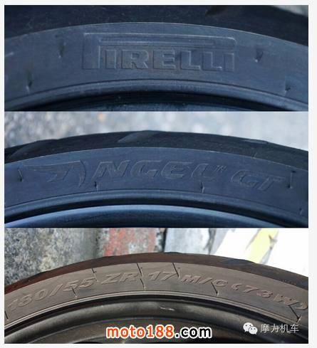 而后輪也是相同于前輪的選擇,由車主自行更換成 Pirelli 的 ANGEL GT 天使休旅胎,規格則是 180/55 ZR17。