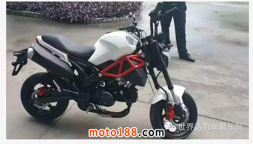 隨銀鋼華北區銷售經理杜總進入銀鋼廠區考察,無意中發現一輛十分討人喜歡的小車。乍一看,這車有點相似DUCATI的新款MONSTER系列,但仔細觀察后發現只有油箱和大燈比較相似,其他地方都是不太相同的。
