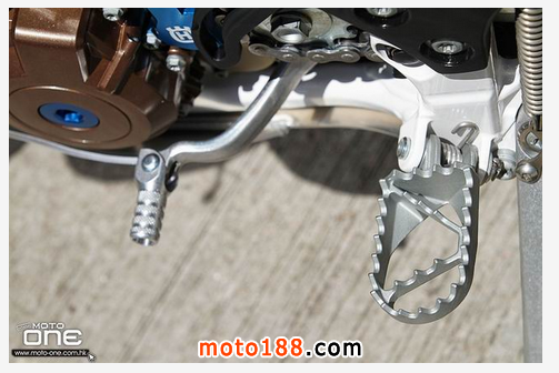 ●一身落場的裝備,左前叉頂調校下壓,右前叉頂調校回彈。