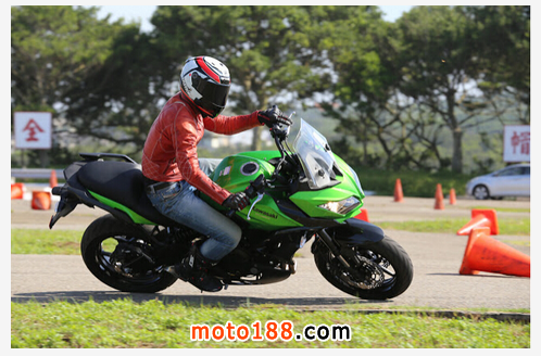 2015 Versys 650 由于懸吊的升級明顯回饋在騎乘的感受上,一開始騎乘安駕的規劃的路線時,還以外傾方式來幫助過彎,但兩圈之後就發現Versys 650 雖然有著長行程懸吊,但支撐性也相當的好,以同傾甚至內傾在這樣的低速連續小彎騎乘也相當順手。