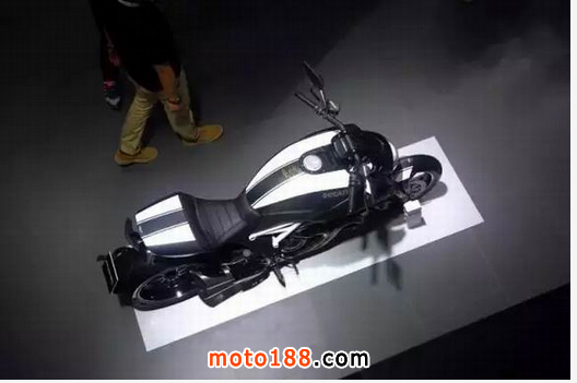 本次展出的車型是 Diavel Carbon 魔鬼碳纖版,是這款車的旗艦級車型。2015 款 Diavel 是杜卡迪全球熱門車型,性能和外形設計經歷了多方面的進化和演變,2014 款車型被國外眾多媒體譽為最佳巡航車,2015 款的車型全面超越了巡航車理念,通過技術的升級和新的美學詮釋帶來了更強的視覺沖擊感和騎行享受。動力輸出依然采用了 1198 CC 的 Testastretta11°引擎,最大可輸出162 匹馬力,雙火花塞設計,燃燒更快更安全,該引擎采用的二次燃料噴射系統提高了燃燒率,降低了排放,并且實現低轉速下引擎更佳的柔順性和安定性。同 2014 款車型相比,2015 款車型增加了油位傳感器,可以顯示燃料剩余量,更新了擾流風擋、前大燈、進氣口、轉向燈、散熱器、進氣罩、座墊、排氣管消聲器等的設計。