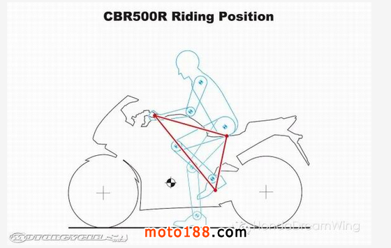 Honda CBR500R 的駕駛姿勢(shì)很舒適,腿部空間比250/300cc的入門(mén)級(jí)運(yùn)動(dòng)車(chē)型更寬裕。