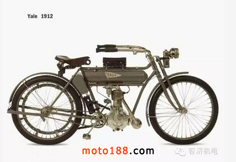 1912年的yale摩托車,已經(jīng)開始裝上前大燈。