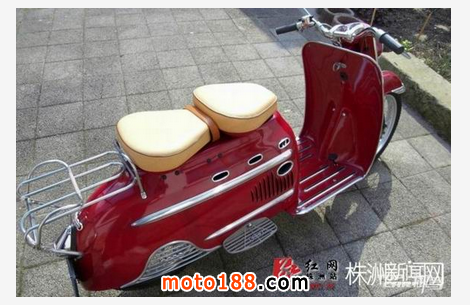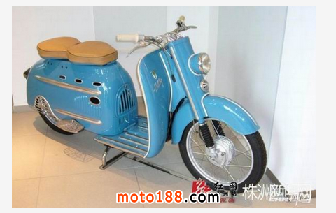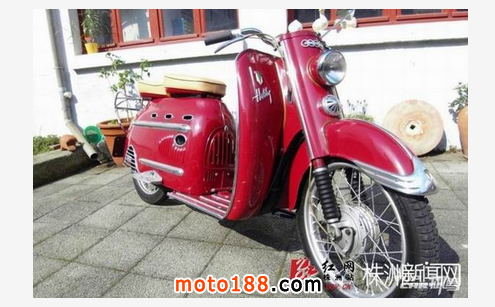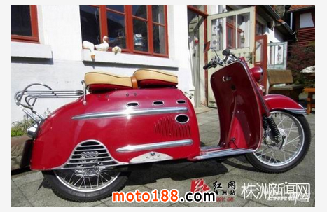 請輸入這臺紅色踏板車的全稱是DKW Hobby,1955年由德國奧迪汽車出品。此車是采用2沖程發(fā)動機的踏板摩托車,做工精致嚴謹,用料扎實,成為現(xiàn)在歐洲很多車迷的熱捧車型。1954-1957年間,奧迪共生產(chǎn)了45303臺DKW Hobby。