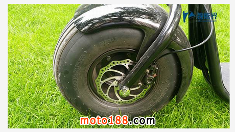 外形的設(shè)計,是產(chǎn)品的一大亮點。酷似哈雷摩托的外觀造型,也為其吸引了無數(shù)的目光和眼球。所以產(chǎn)品最令人眼前一亮的地方,還是要屬于前后兩個超大的輪胎。兩個直徑為18英寸,寬度為9.5英寸的超寬直紋真空輪胎,著實將我們震撼了一把。要知道一般汽車輪胎的尺寸大小也不過如此,而在我們對比之后,發(fā)現(xiàn)Citycoco的輪胎還真是和普通汽車的輪胎旗鼓相當。