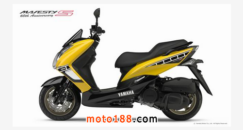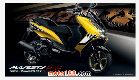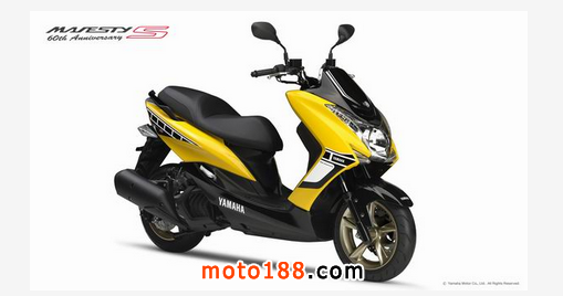 Yamaha 昨天向本土市場發布了工廠創立六十周年紀念圖案的 2016' XC155 Majesty S。該車由廠方在臺灣的合資企業臺灣山葉負責生產,車身采用了在上世紀七、八十年代,Yamaha 活躍于北美地區比賽時、廠隊所使用的黃底/黑白方格圖案之設計,前風檔的左側有六十周年的標記。新車從昨天開始在 Yamaha 本土各處的經銷商接受預約訂購、至明年的四月底截止且限量供應,公布的含稅零售價為 36.072 萬日元(與 2016' XC155 SP 相同,較 2016' XC155 的 34.992 萬日元略高),參考近期匯率,折合人民幣約為 1.84 萬元。